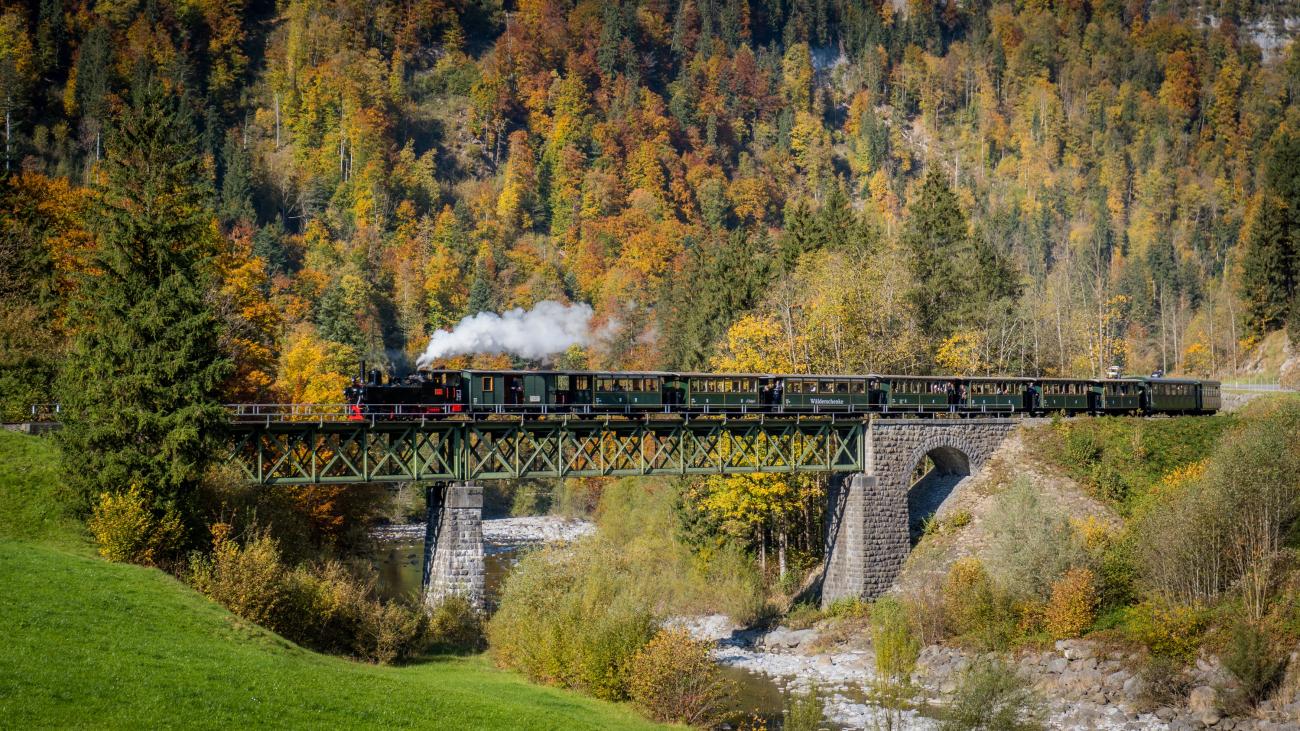 Mit historischen Dampf- und Diesellokomotiven werden 5 km der einstigen Strecke zwischen den Bahnhöfen Bezau und Schwarzenberg befahren. Ein nostalgisches Vergnügen für Ausflügler, Urlauber und Eisenbahnfreunde. Lokomotiven